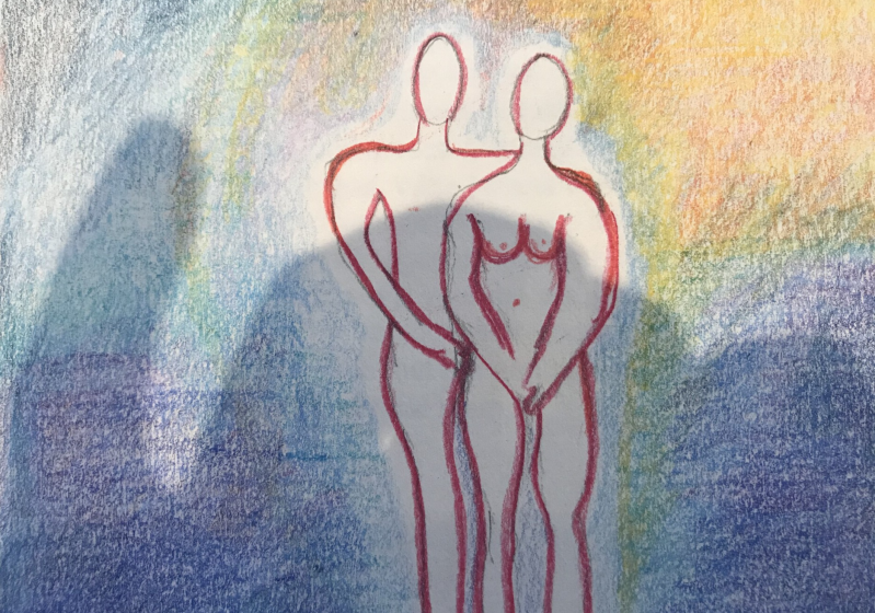 “Ik heb alles,” zegt ze,”alles wat me gelukkig maakt, maar toch kan ik niet zo onbevangen genieten als op deze dag.” En ze vertelde hem van haar ochtend, haar succes en haar zware gemoed. Hij schonk nog een beker wijn in. Ze nam een oester aan, deed er een beetje citroensap en peper op en liet het in haar mond glijden. Daarna een slokje witte wijn en haar genot was compleet. “Zou je het willen weten?” vroeg hij. “Wat?” antwoordde ze nog vanuit de zevende hemel. “Dat wat je beperkt in je vrijheid?” “ Mijn vrijheid?” vroeg ze verbaasd. “Ja, waarom kun je niet voluit genieten?” Ze staarde over de zee. Had genot met vrijheid te maken? En haar blik viel op haar gouden trouwring. Als door een wesp gestoken, sprong ze op en keek naar zijn hand. Een gouden ring, hààr gouden ring! Maar dan twee maten groter. Hij zag het ook. Hij pakte haar hand, streelde die.” We zijn verbonden” zei hij. Hij liep naar de vloedlijn, in zijn hand een stok die nog niet aan het vuur was geofferd.